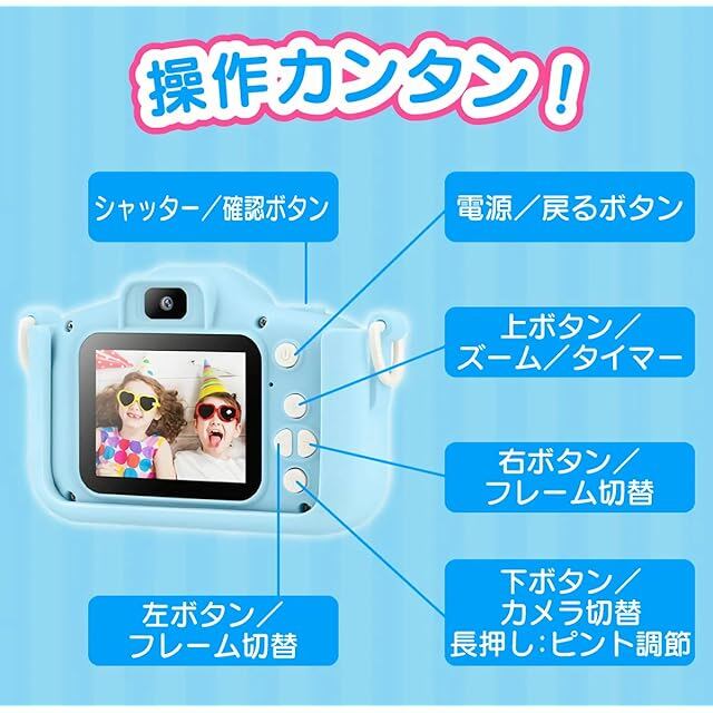 商品名:【 わくわく ハロウィン 新登場】子供用 キッズカメラ トイカメラ1080P HD動画 32GBメモリーカード付き 2.0インチIPS 画面8倍ズームUSB充電 デュアルレンズ 七五三 録音自撮りカメラデジタルカメラ 男の子 クリスマスおもちゃ 女の子 子供の日 保護ケース 桜シーズン撮影日本語説明書付き FOROMONE (ブルーの猫)