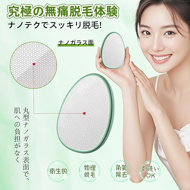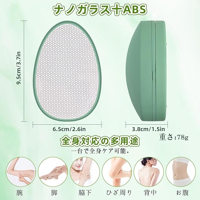【完全無痛!ナノガラス技術】脱毛器はアップグレードされたナノガラス技術を搭載、化学物質ゼロでお肌に優しいです。軽く肌に円を描くようにこするだけで、毛を痛みなくスムーズに脱去でき、またはワックスやカミソリのような刺激や黒ずみも残さず、敏感肌にも安心。サロン要らずで、手軽にすべすべ肌を実現できます。
