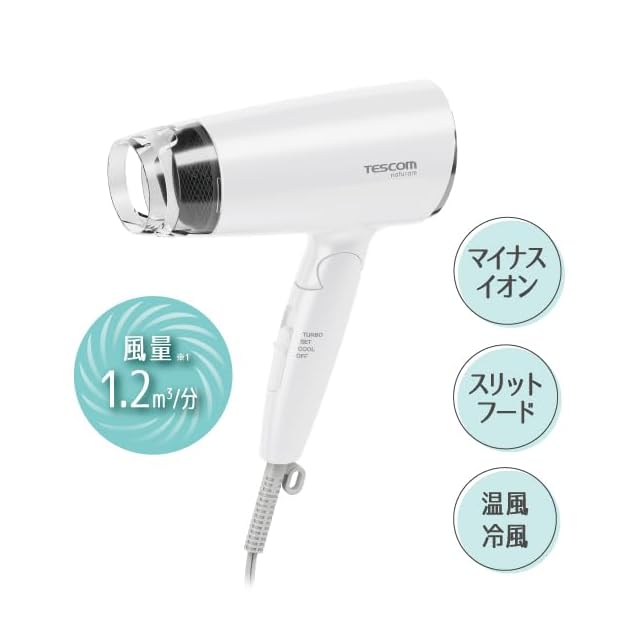 商品名:テスコム ドライヤー マイナスイオン 冷風 軽量 折りたたみ naturam ホワイト TD200B-W