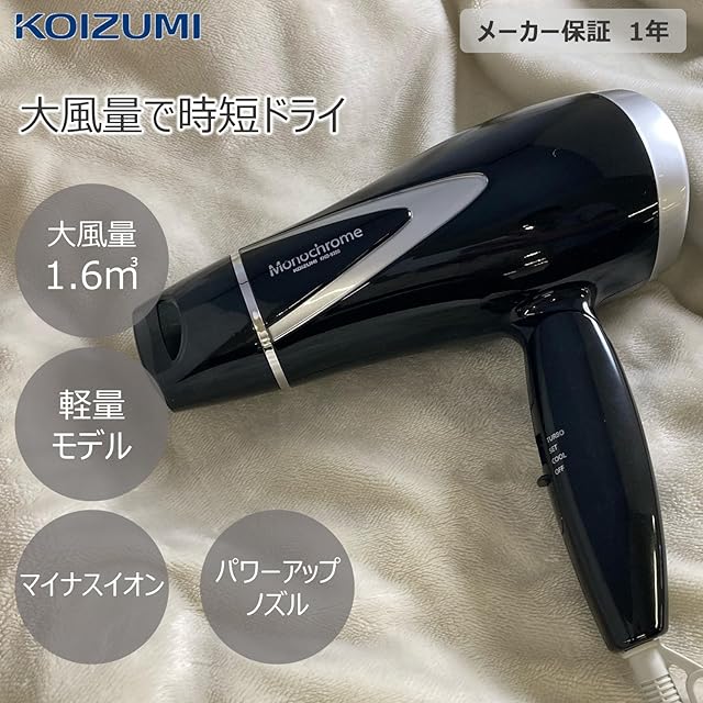 モノクローム(Monochrome) 【.co.jp限定】コイズミ ヘアドライヤー マイナスイオン 軽量タイプ ブラック KHD-9300/BK モノクローム