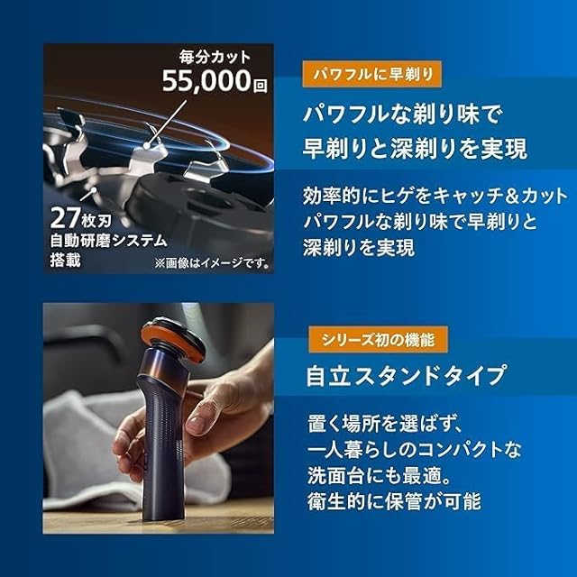 ✅ 【早剃り】早剃り&パワフルな剃り味。毎分55,000回カットの27枚刃搭載