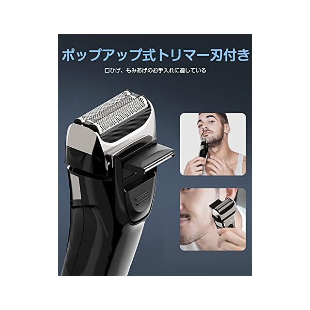 商品名:シェーバー メンズ 髭剃り 電動 電気シェーバー 往復式 ひげそり 3枚刃 メンズシェーバー 電気カミソリ ウェット&ドライ お風呂剃り可 IPX7防水 LEDディスプレイ トリマー付き 替刃付き 軽量 持ち運び便利 日本語説明書付き