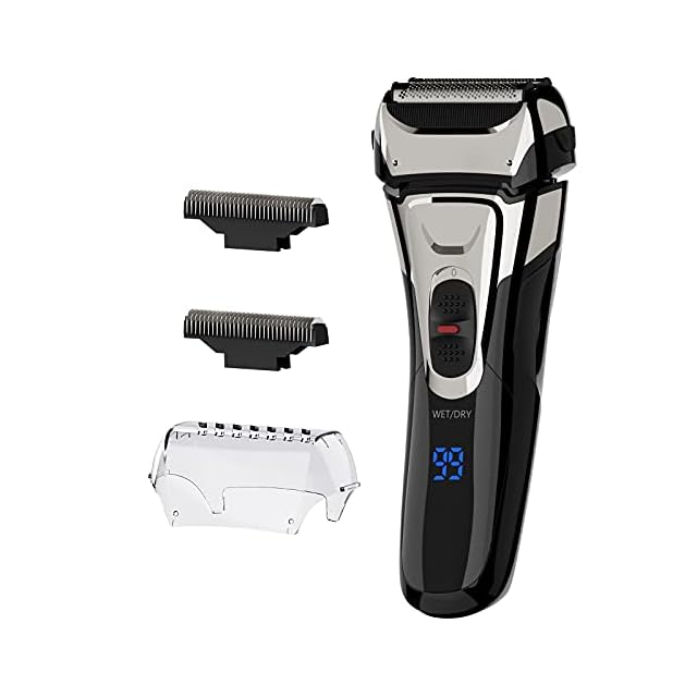 シェーバー メンズ 髭剃り 電動 電気シェーバー 往復式 ひげそり 3枚刃 メンズシェーバー 電気カミソリ ウェット&ドライ お風呂剃り可 IPX7防水 LEDディスプレイ トリマー付き 替刃付き 軽量 持ち運び便利 日本語説明書付き