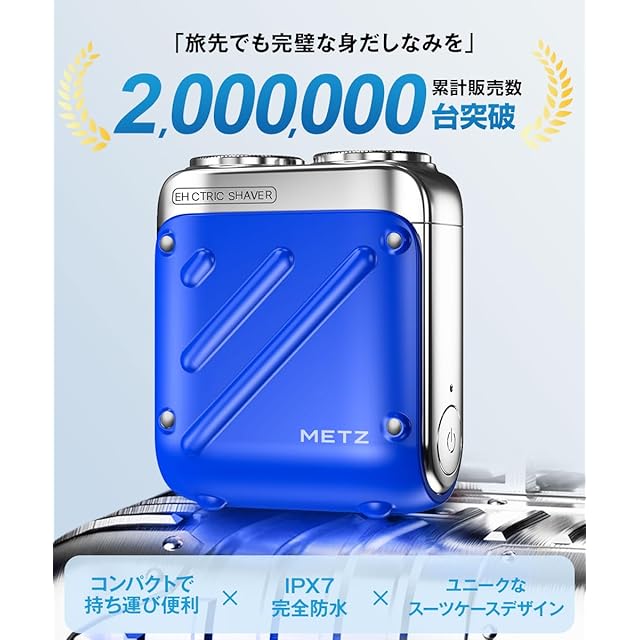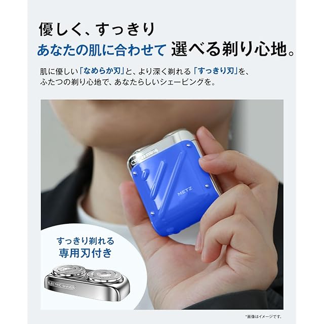 商品名:メッツ シェーバー ひげそり 電動シェーバー メンズ 電気シェーバー 小型 回転式 髭剃り コンパクト 軽量 持ち運び便利 乾湿両用 IPX7防水 収納ケース付き type-c充電式 出張 旅行 プレゼント (ブルー・替刃付き)