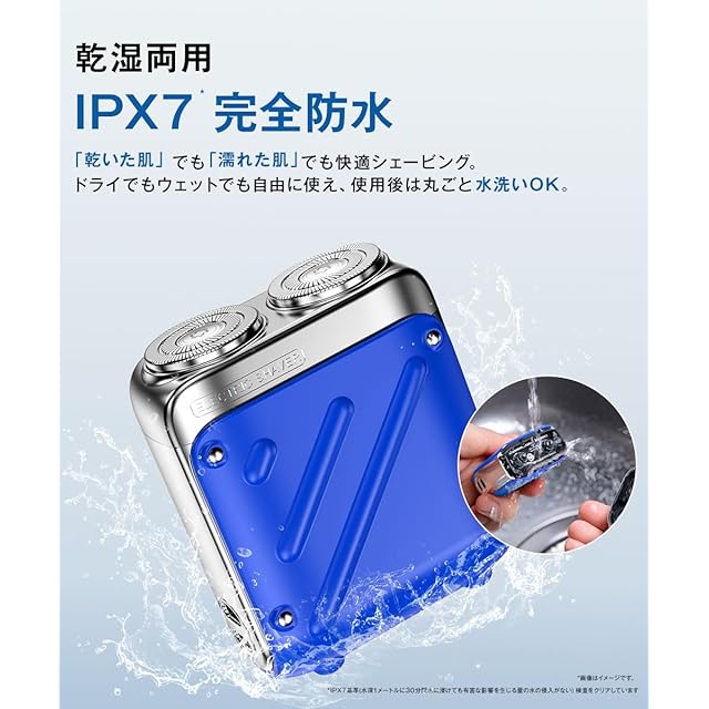 【IPX7完全防水 & 丸洗いOK】 IPX7防水仕様で、シェーバー 本体を丸ごと水洗い可能。ドライ剃りだけでなく、シェービングフォームやジェルを使った ウェット剃り にも対応し、肌への負担を軽減。乾湿両用 設計により、敏感肌の方でも安心して使用できます。使用後はサッと洗い流せるので、ひげそり 後も常に清潔な状態をキープできます。