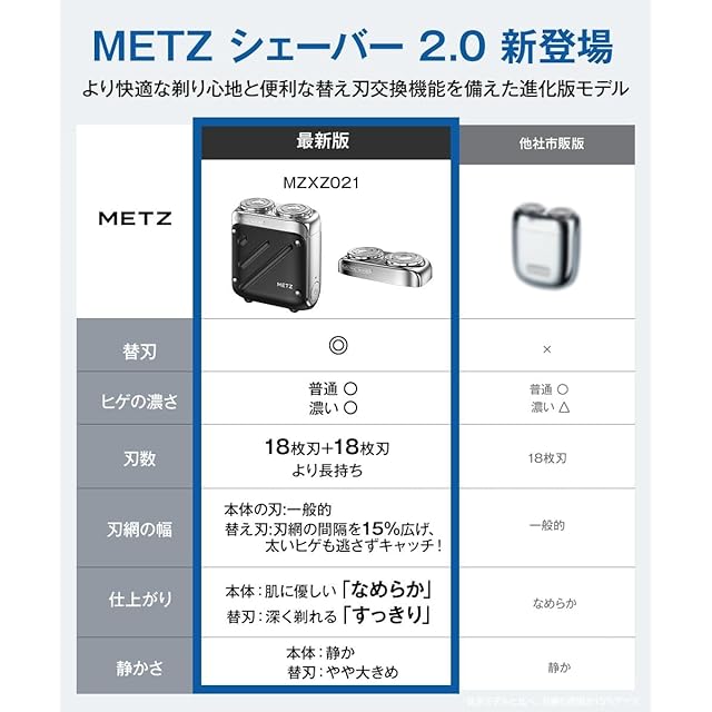 【2年 & 日本語カスタマーサポート】 最新の Type-C充電式 を採用し、短時間での急速充電が可能。一度の充電で長時間使用できるため、出張や 旅行 にも頼れる 電動 ひげそり です。さらに、METZの製品は2年間の付き。万が一の不具合にも対応できる 日本語カスタマーサポート を完備し、安心してご使用いただけます。ギフトや プレゼント にも最適な、スタイリッシュで実用的な メンズ シェーバー です。