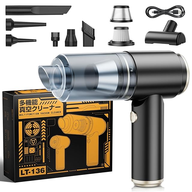 【新登場】 ハンディクリーナー コードレス 強力吸引力【吹き飛ぶ/吸い込む/空気入れ/空気抜き】 多機能車用掃除機 Type-C 急速充電 乾湿両用小型掃除機 ご家庭のホコリ取り/キーボード掃除/車の内装掃除に最適 Svoko LT-136