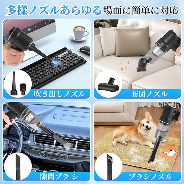 商品名:【.co.jp限定】2025 ハンディクリーナー toauo 車用 掃除機 ハンディ掃除機 25000PA Type-C 充電式コードレス パワフルはんでい 乾湿両用 強力吸引力 小型クリーナー高速充电 低噪音对策 LED照 4in1 車載ミニポータブル 軽量/業務用/キーボード掃除/車内清掃/家具/家庭用