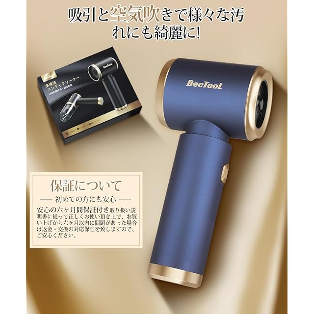 商品名:【新登場】ハンディクリーナー 多機能 車用掃除機 コードレス 25000Pa 強力吸引力 BeeTool【吹き飛ぶ/吸い込む/空気入れ/空気抜き】ハンディ掃除機 パワフル 長時間稼働 超軽量0.36kg 乾湿両用 小型 USB充電式 メーカー付 人気 業務用/車用清掃/家具/家庭用 日本語説明書付 ZX-106 ネイビー