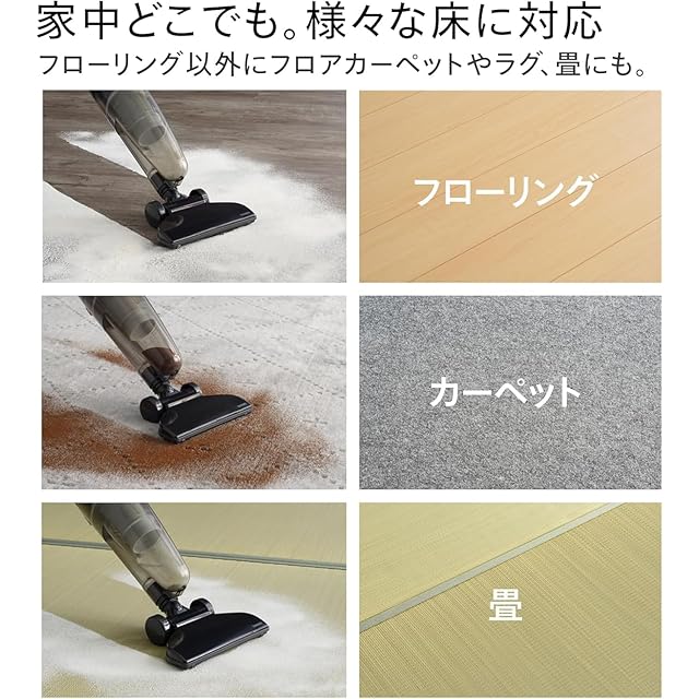 【家中どこでも。様々な床に対応】フローリングはもちろん、畳や毛足の長い絨毯に潜んだごみもしっかり吸い取ります。