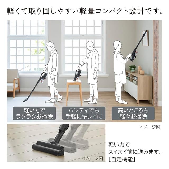 片手でラクラク使える軽さ(軽量1.1kg)と、驚きの吸引力を両立。