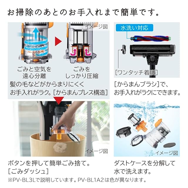 ブラシ・ダストケース丸洗いで清潔。