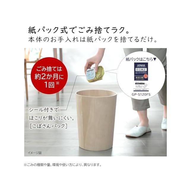 吸引力が続く紙パック式。ごみがいっぱいになったら捨てるだけ。