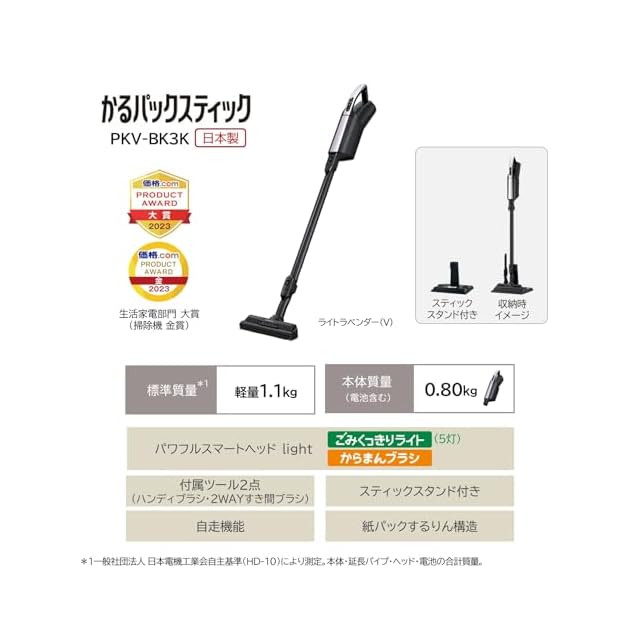 商品名:日立(HITACHI) 掃除機 かるパックスティック 紙パック式 スティッククリーナー PKV-BK3K V ライトラベンダー 日本製 強力パワー 軽量 自走式