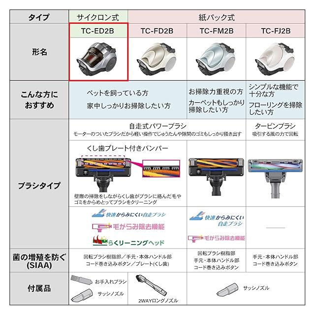 三菱電機 Mitsubishi Be-K(ビケイ) サイクロン式 掃除機 小型 軽量 自走式パワーブラシ からみにくい 日本製 TC-ED2B-S プレミアムシルバー