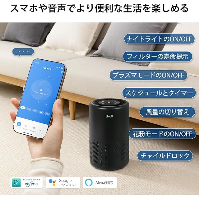 商品名:Levoit (レボイト) 空気清浄機 18畳 小型 卓上 プラズマイオン コンパクト 脱臭 ハウスダスト ほこり 集じん ペット スマホ対応 2in1浄化 Core 200S ブラック