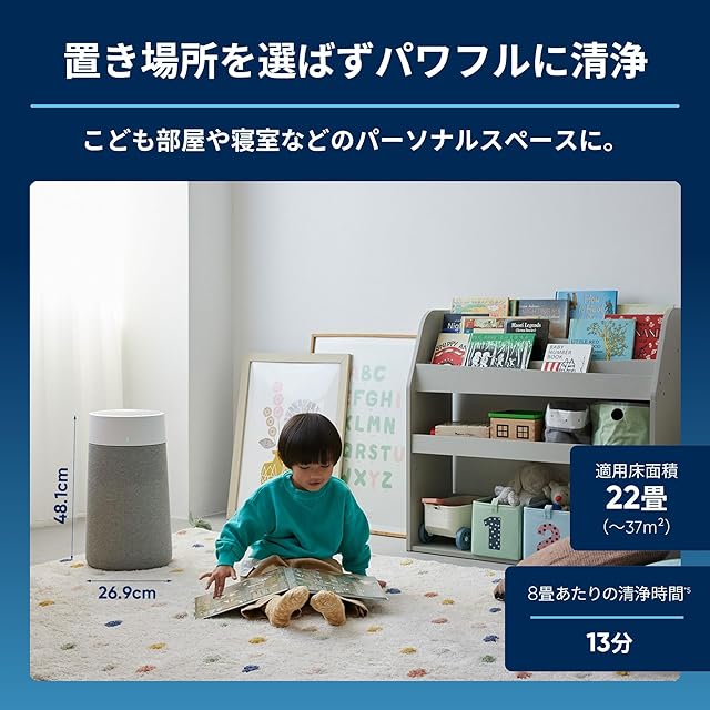 ✅【ファン部分を大型化】Blue Max シリーズでは、本体構造や供給口の形状を見直しています。天面のファンを大型化しフィルター面積を増やすことにより、花粉除去スピードの向上と低電力*4を実現。また新たにノイズシールドを搭載することで、静音性*3にも寄与しています。これにより従来モデルよりも短時間で多くの清浄な空気を供給することができるようになりました。