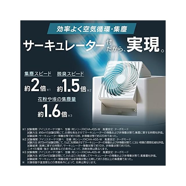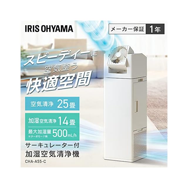 アイリスオーヤマ サーキュレーター付 加湿空気清浄機 【1台で3役!省スペース】 空気清浄器 花粉 乾燥 高速空気清浄 高速循環 うるおいプラス 【空気清浄】25畳 【加湿空気清浄】8.5~14畳 CHA-A55-C