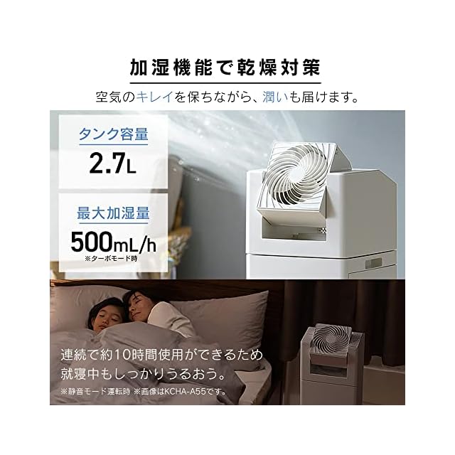 ◆point2.空気にうるおいをプラス。お部屋の乾燥が気になる時期は、空気清浄に加湿をプラス。空気のキレイを保ちながら、空気に潤いも届けます。連続で約8時間使用ができるため、就寝中もしっかりうるおいます。※標準運転時