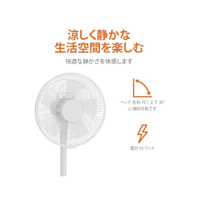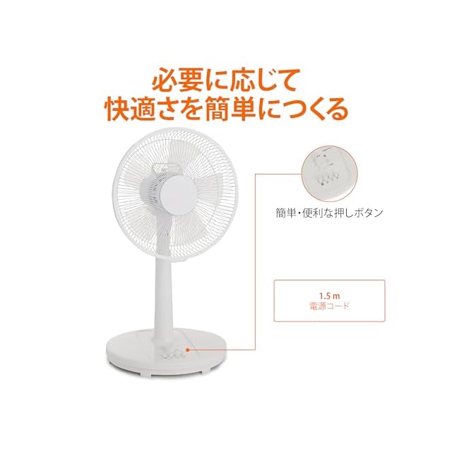 手軽に涼風を送る台座付リビング扇風機。首振り : 左右方向に合計75度 (自動) 、上下方向に合計36度 (手動)