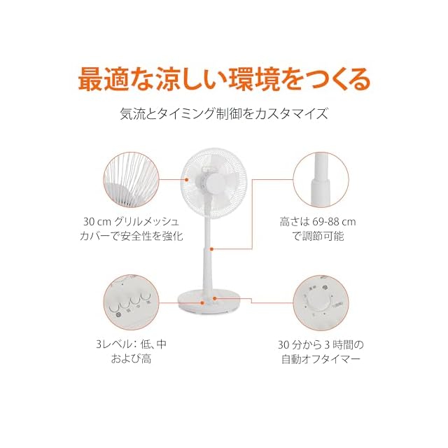 商品名:ベーシック リビング扇風機 首振り タイマー機能付 風量調節3段階 ホワイト 羽根直径30cm