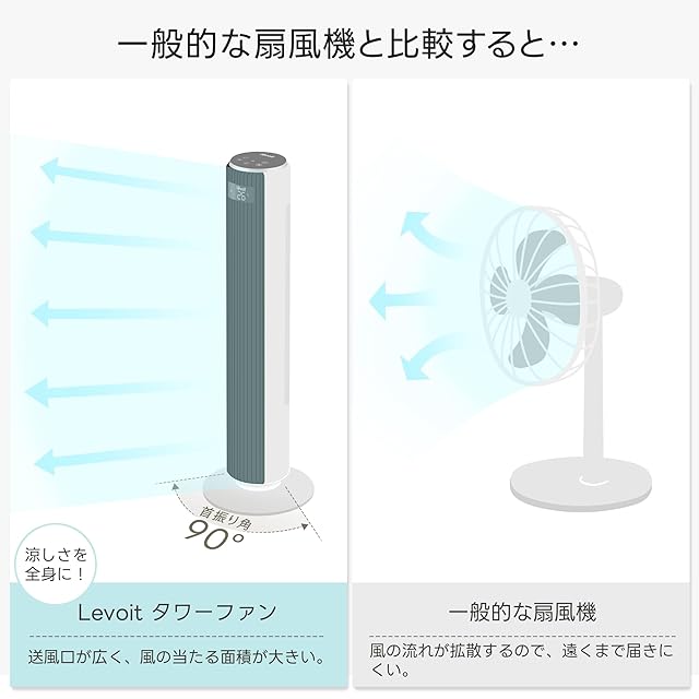 商品名:Levoit (レボイト) 扇風機 タワーファン 静音 羽なし 送風機 左右90°自動首振り 温度センサー付き 自動風量調節 12時間タイマー リモコン付き 7.5m/s リビング/寝室 縦型 スリム LTF-F361-WJP