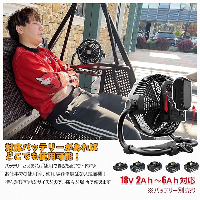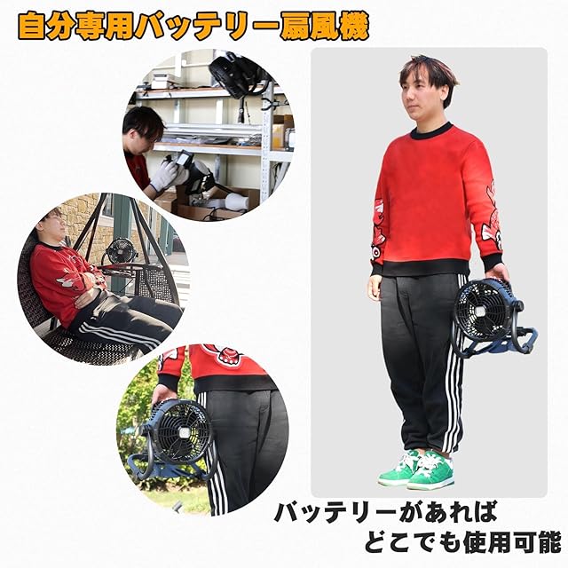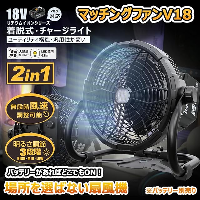 ❤【マッチングファンV18】自社開発新デザイン。バッテリーは着脱式なので、対応バッテリーがあれば長時間使用可能。アダプターでも給電可能!アダプターの届く範囲であれば常時運転が可能!