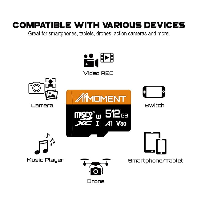 MMOMENT マイクロSDカード 512GB Nintendo Switch対応/MicroSDXCカード / 4K対応 / Class10 / UHS-I / U3 / A1 / V30 / SDアダプター付【読込最大95MB/s】