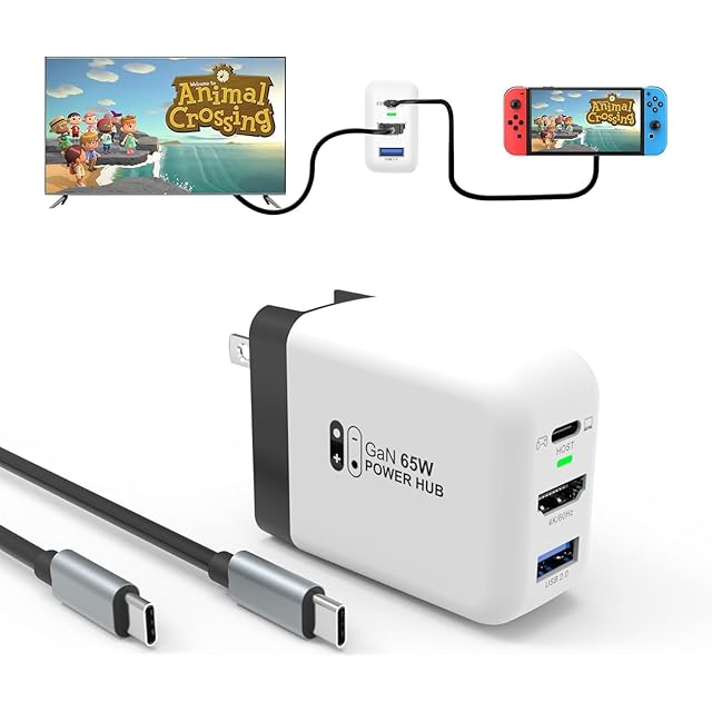 【GaN採用革新版/小型化サイズ】TreasLin 65W多機能ACアダプター USB-C急速充電・HDMI パススルー出力・USB-A電子製品接続 Switch充電器+Switchドック代用品TVモード対応 PSE認証済過電流保護 軽量持ち運び便利Type-Cケーブル付き CD0303-B-65W(White)