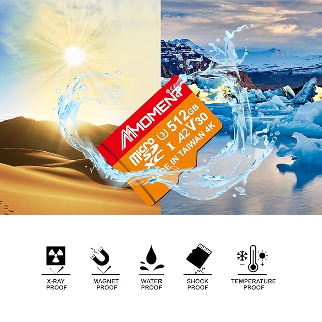 MMOMENT 512GB A2V30 MicroSDXCカード Gopro対応 SDアダプター付【読込最大160MB/s】