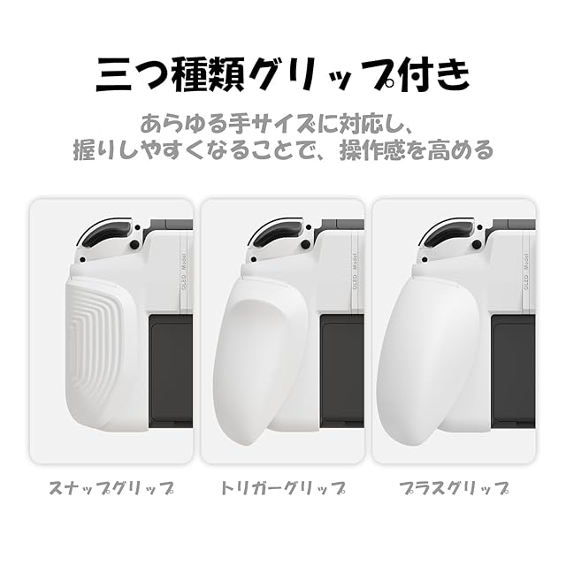 【操作性抜群】三種類の交換可能なグリップ、あなたに合うがきっとあります。ゲームを快適に体験でき、長時間プレーの疲労感の解消ができ、最高の握り心地をあなたに。