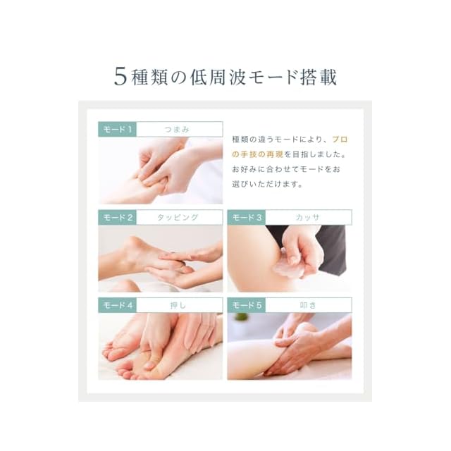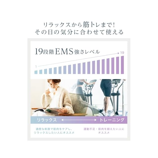 EMS強さレベルUP & EMS品質リニューアル:1~19段階まで調整が可能です。さらに、5種類の低周波モードを搭載。その日の気分や用途によって使い分けができます。