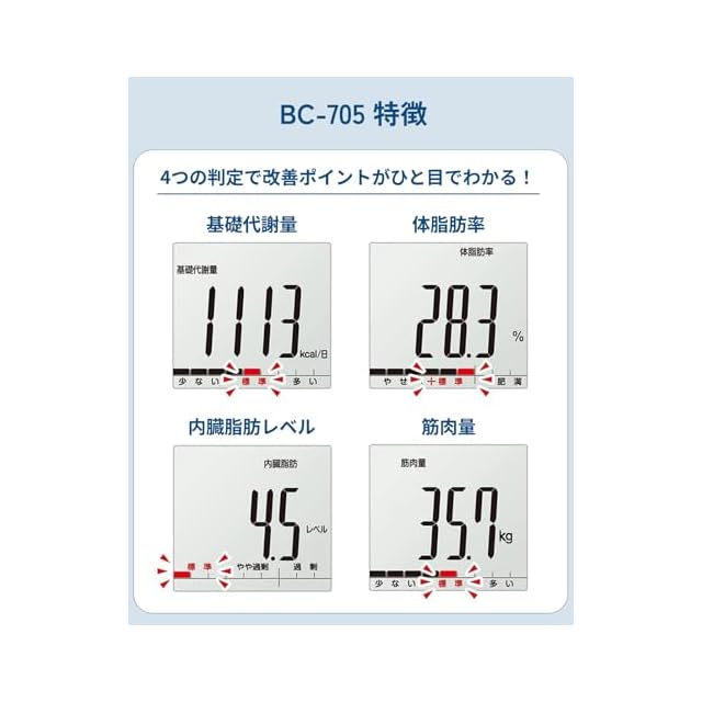 タニタ 体重計 体組成計 ヘルスメーター BC-705N【体脂肪率/内臓脂肪レベル/筋肉量/基礎代謝量/体内年齢/BMI/日本製/乗るピタ】