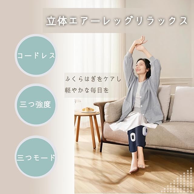 商品名:ふくらはぎリラックス エアーレッグリラックス 強度3段階 15分タイマー自動おフー USB充電式 サイズ幅調整可 母の日 父の日 誕生日 敬老日 プレゼント ギフト 家庭用 男女兼用 左右兼用 日本語説明書付き 持ち運び便利(2個) (ブルー)