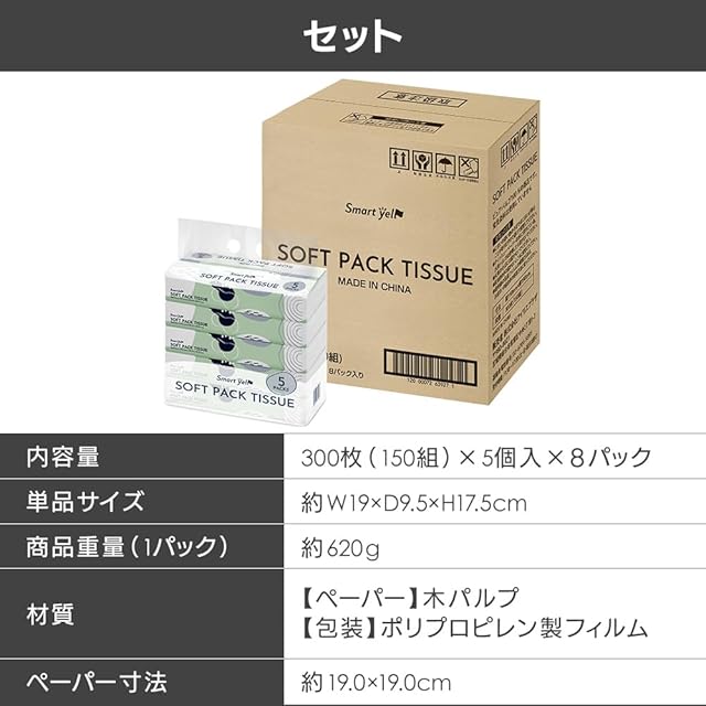 商品名:アイリスプラザ(IRIS PLAZA) 【8個セット】 ソフトパックティッシュ 300枚 (150組)x5パック スマートエール