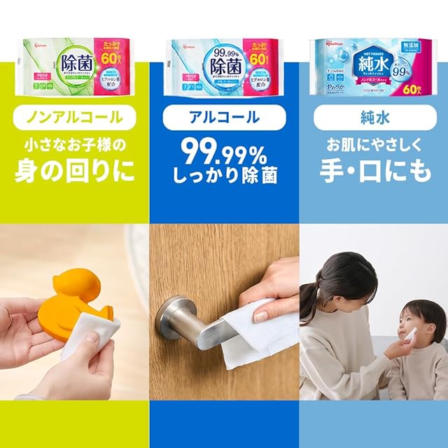アイリスオーヤマ(IRIS OHYAMA) ウェットティッシュ 純水99% 480枚(60枚入×8個) コンパクト 掃除 持ち歩き お出かけ 携帯 手口拭き 大容量 WTS-60P8P