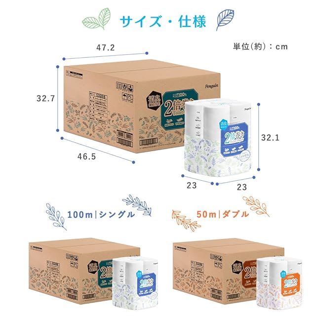 商品名:アイリスプラザ(IRIS PLAZA) 【ケース販売】 ペンギントイレットペーパー シングル 100m 12ロール(実質96ロール分) 2倍巻き ピュアパルプ 切り取り線 エンボス加工 消臭機能 芯あり 肌触り 柔らか