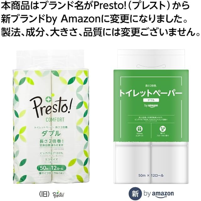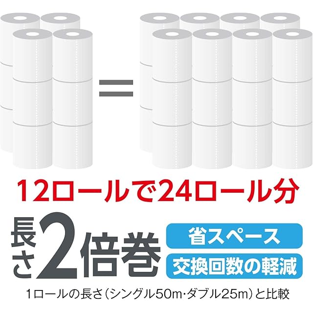 by トイレットペーパー 長さ2倍巻 50m x 12ロール ダブル 単品 (12ロールで24ロール分) フローラルの香り
