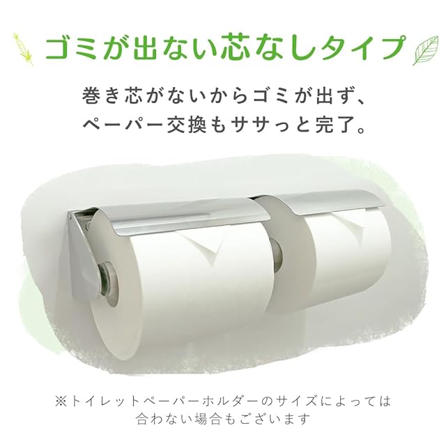ゴミが出ない芯なしタイプ、家庭用のトイレットペーパーホルダーでも使いやすい設計。