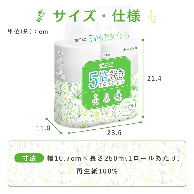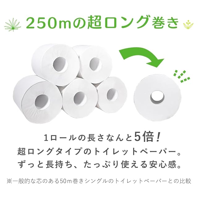 1ロールの長さなんと250m⁉ 5倍巻き超ロングトイレットペーパー‼