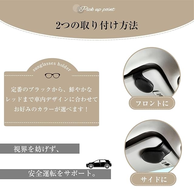 【使い方が簡単でドライブがもっと快適に】簡単に挟めるフック式でサンバイザーに挟むだけで設置が可能で、女性の方でもらくらく。サングラスや眼鏡だけでなくクレジットカードや駐車券などの整理にも使えます。しかも視界の邪魔にならない小型設計なので快適に運転することができます。