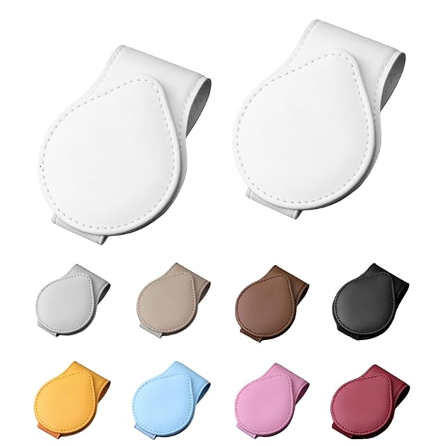 サングラスホルダー 車 2個セット メガネホルダー レザー素材 眼鏡を守ります サンバイザー サングラス クリップ 安全運転 車用収納 取り付け簡単 マグネット 選べる9色 カー用品 車載収納用 車 アクセサリー(丸型・「ホワイト」2個セット)