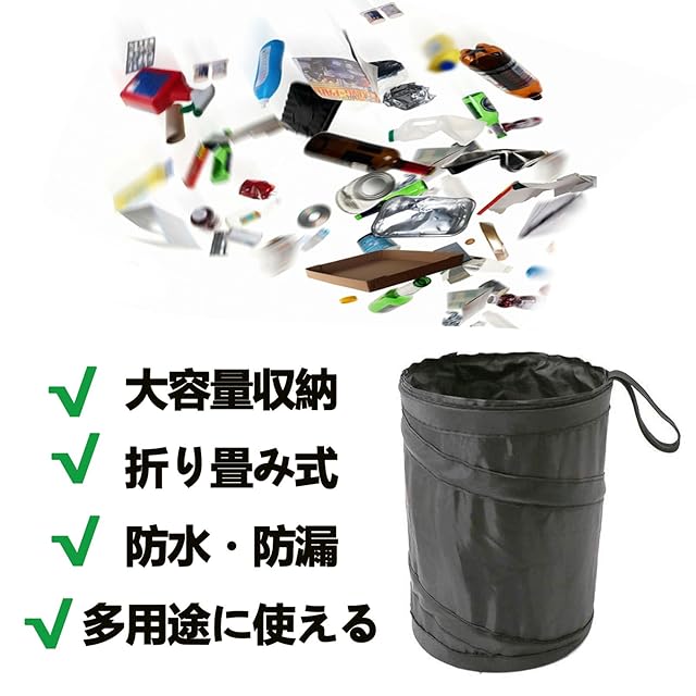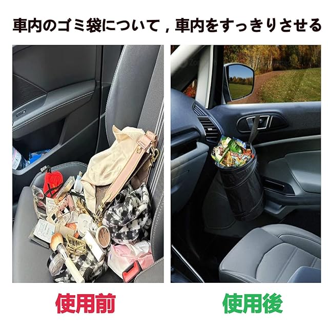 【幅広い用途】この車用ゴミ箱は車内だけでなく、家庭やオフィスでダストボックスや小物の収納ボックスとしても使えます。車内を整理して生活をより便利にすることができます。携帯電話、化粧品、本、ペン、子供のおもちゃなど、車内に必要な小物も収納できます。あらゆるタイプの車に適しています。たとえば、乗用車、タクシー、SUV、バン、トラック、長距離バスなどです。