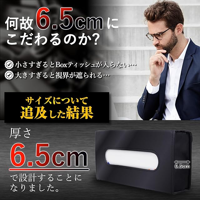 様々な方の貴重なご意見から完成した当社オリジナルサイズで、国内の有名メーカーのスリムタイプのボックスティッシュが箱ごとスッポリ入ります。 車内の景観を損なわない高級感あるPUレザー素材でお洒落にティッシュ箱を収納できとても便利です。 商品サイズ:24.5cm×12.5cm×6.5cm 重量170g IROKOHA 商願2021-139828 意匠登録 第1719314