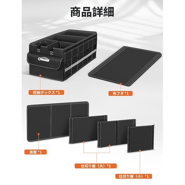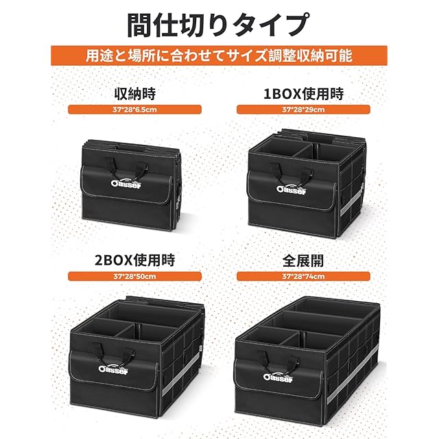 商品名:Oasser トランクボックス 車用収納ボックス 75L大容量 折りたたみ可能 蓋付き トランク ラゲッジルーム 収納 車用 収納ケース