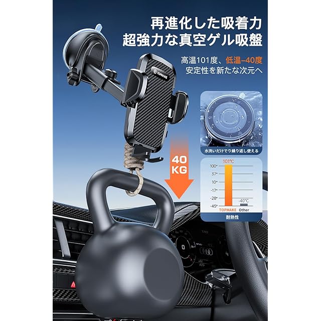 商品名:Topmake スマホホルダー 車 車載ホルダー ゲルサクションカップ/クリップ 2in1 携帯ホルダー 車 エアコン吹き出し口 360度回転 伸縮アーム 幅52mm〜95mmの携帯電話に適しています 日本語マニュアル付き(黒)