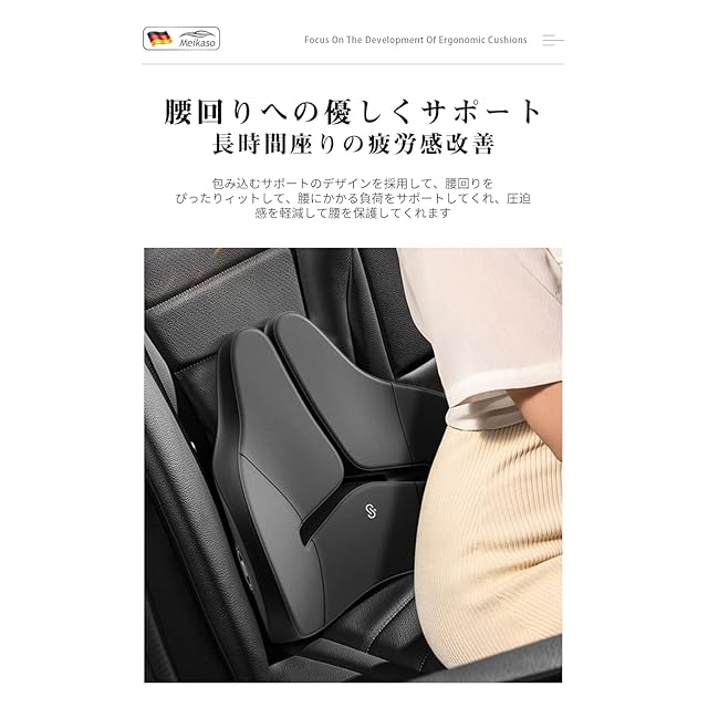 商品名:Meikaso 腰クッション ランバーサポート ファッション背もたれ カークッション ウェストクッション 着座 アップグレード ハイエンド 運転 腰楽 低反発 枕 通気性 人間工学 腰サポート 車用品 オフィスチェア用品 (ブラック)