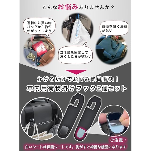 ✅【荷物掛けにも便利】車 フック は愛車のヘッドレストステーに引っ掛けるだけで、誰でも簡単に収納フックを設置することができます。使い勝手の良い便利な2個セットにより、傘・お買い物袋・バッグ・ティッシュボックスなどご使用いただくことができます。