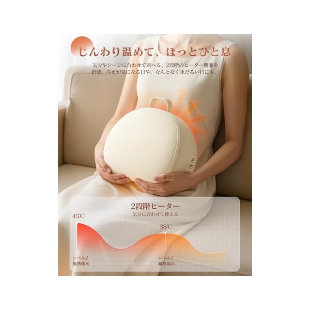 【多彩な3モード×3速×2温度で極上の心地よさ】正回転・逆回転・交互回転の3モードは、まるでプロの手技を再現したかのような多彩な動きを楽しめます。3段階のスピードがあり、気分や好みに合わせて自在に調整可能。さらに2段階のヒーター機能でじんわり温め、ほっとするあたたかさでリラックスタイムをサポート。男女問わず、家族みんなの好みに応える、頼もしいスッキリピローです。