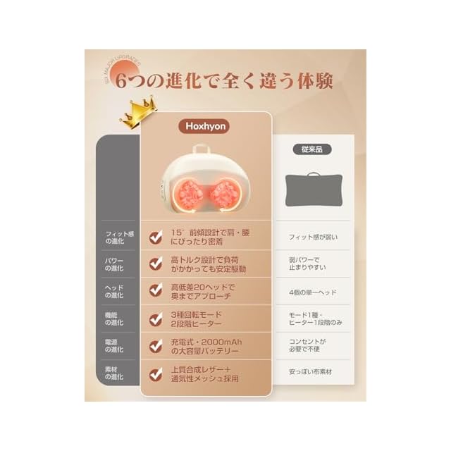 商品名:【2025新設計】腰枕 クッション Hoxhyon 敬老の日 USB充電式 腰・背中・首・肩・太もも・ふくらはぎ 一台多役 寝ながら使える ピロー コードレス 双方向回転 3段階強度調節 温熱機能 静音 タイマー付き 誕生日 母の日 父の日 記念日 クリスマス 新年 プレゼント 家庭用 職場用 車用 男女兼用